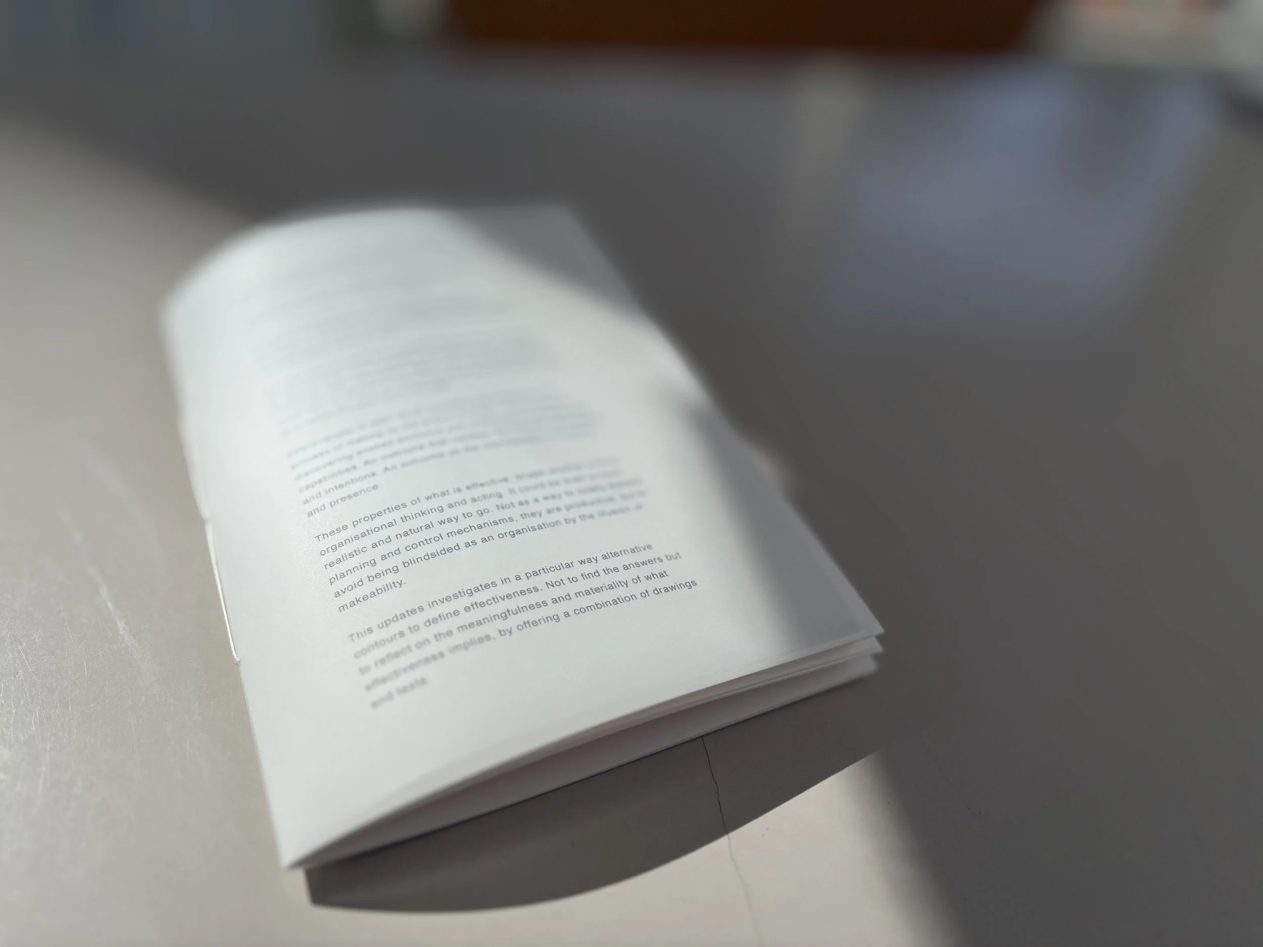 This updates investigates in a particular way alternative contours to define effectiveness. Not to find the answers but to reflect on the meaningfulness and materiality of what effectiveness implies, by offering a combination of drawings and texts.